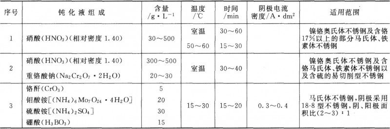 深圳電鍍廠:不銹鋼鈍化處理通常在硝酸或硝酸一鉻酸鹽溶液中進(jìn)行,表7—22列出鈍化處理液的成分及工藝條件。